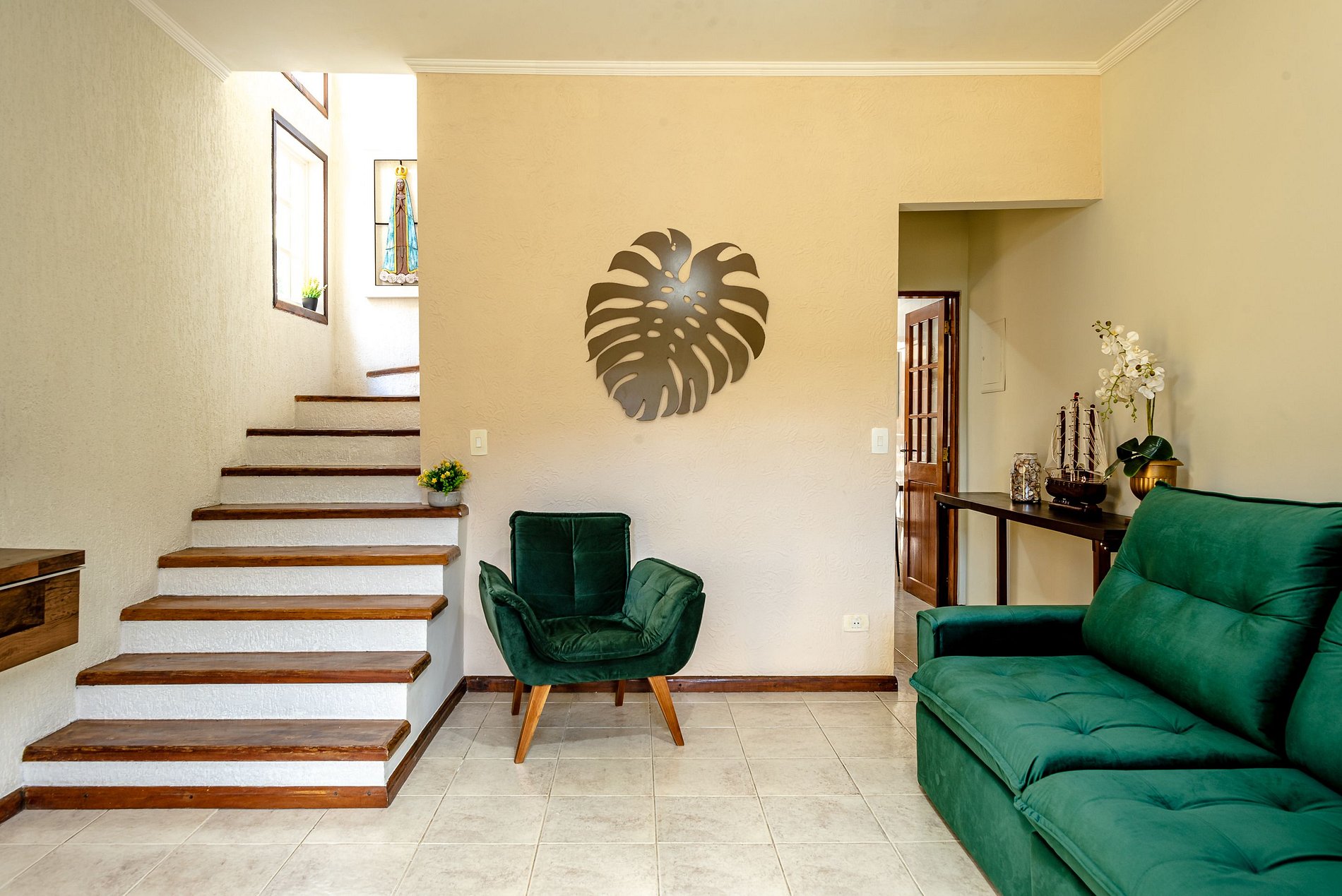 Com 3 quartos, a casa acomoda até 8 pessoas com conforto. Todos os cômodos foram planejados para garantir uma estadia acolhedora e prática.
