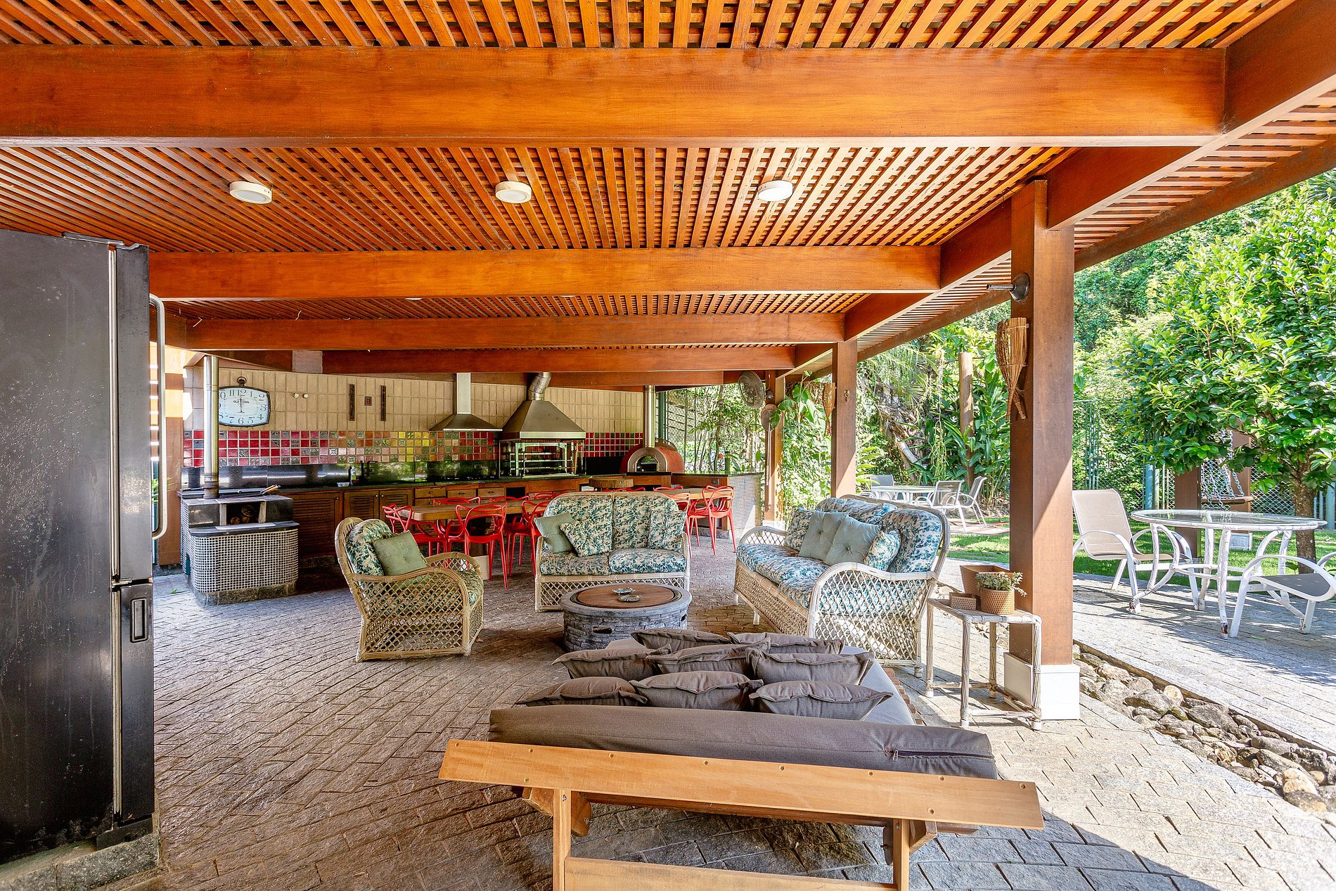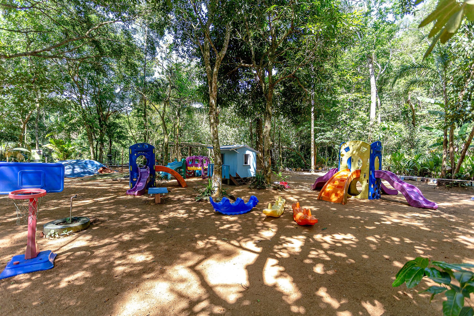 Um dos grandes diferenciais é o condomínio, que conta com uma encantadora área cheia de bichinhos como coelhos, pavões, galinhas e jabutis, quadra de tênis em saibro e uma quadra de futebol, compondo um ambiente acolhedor e cheio de vida para sua estadia. Para quem busca momentos de descanso, há redes para relaxar e um rio localizado atrás do imóvel, ideal para um mergulho ou momentos de contemplação da natureza.