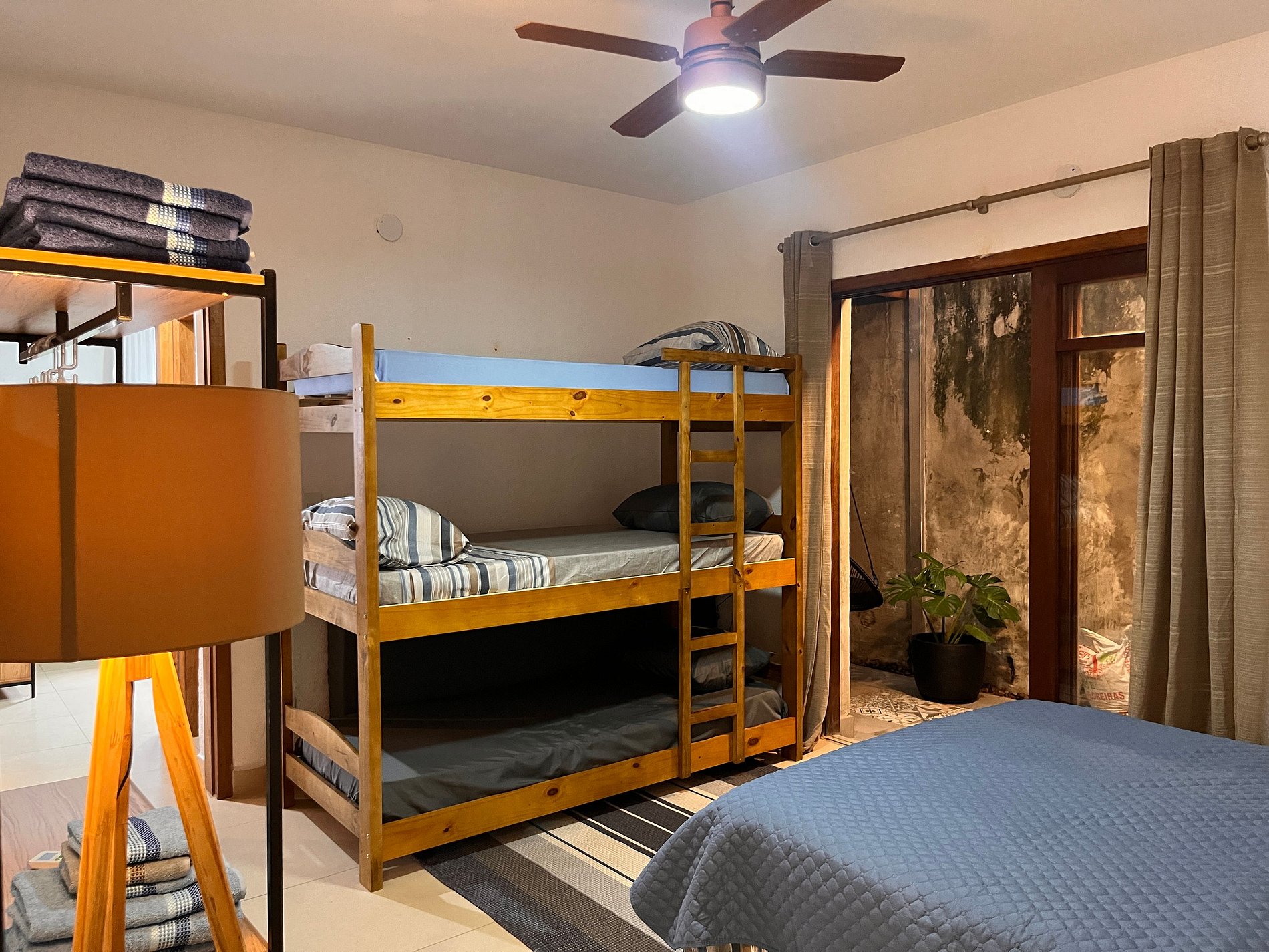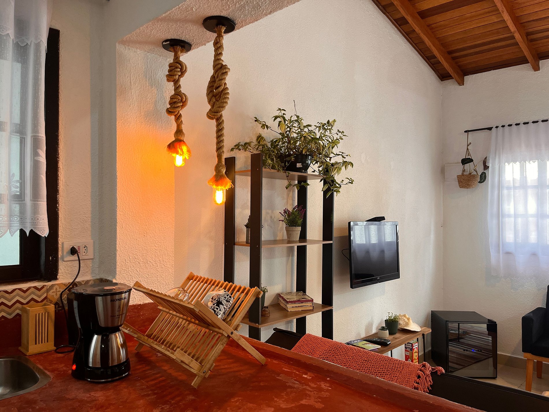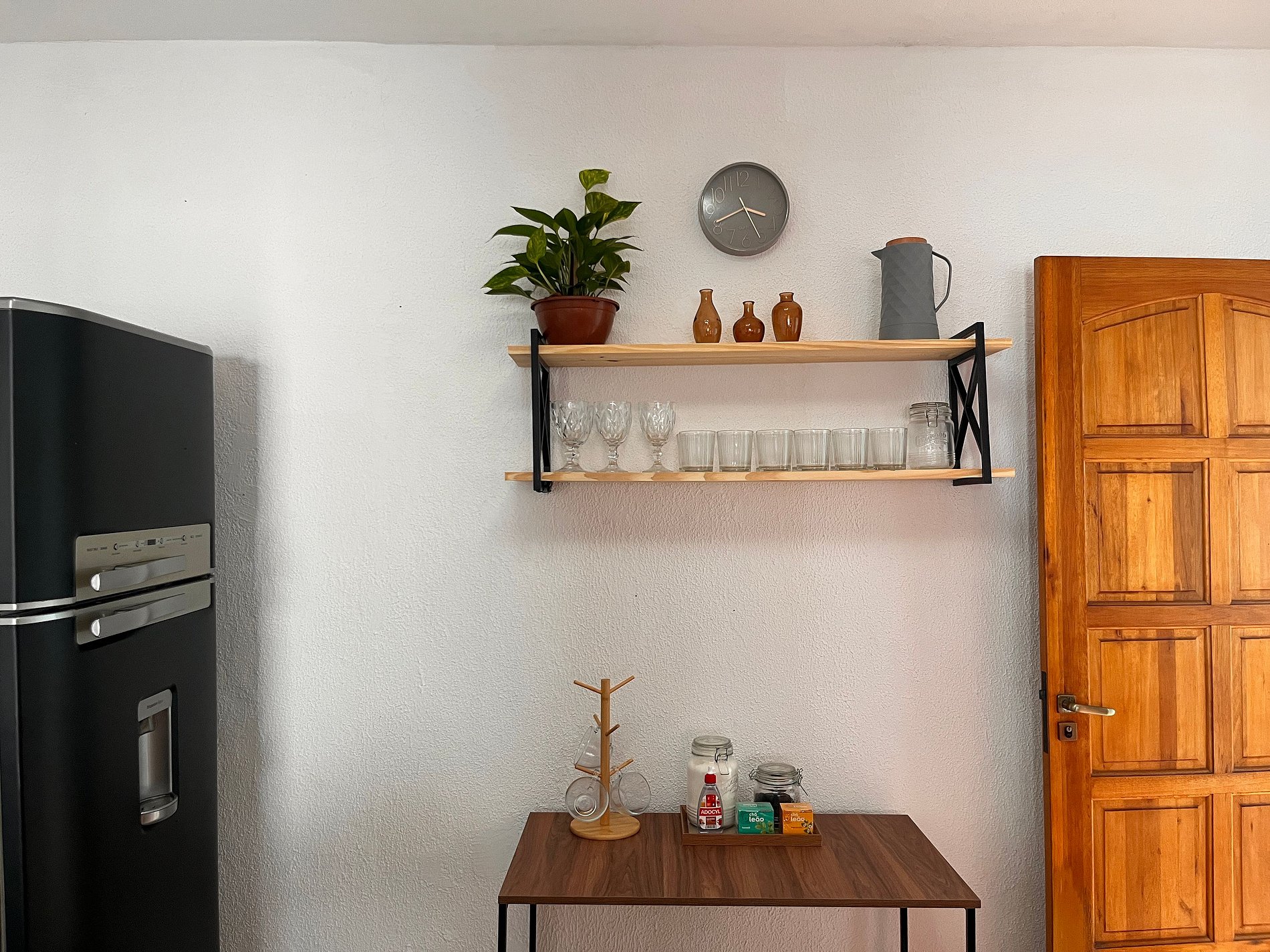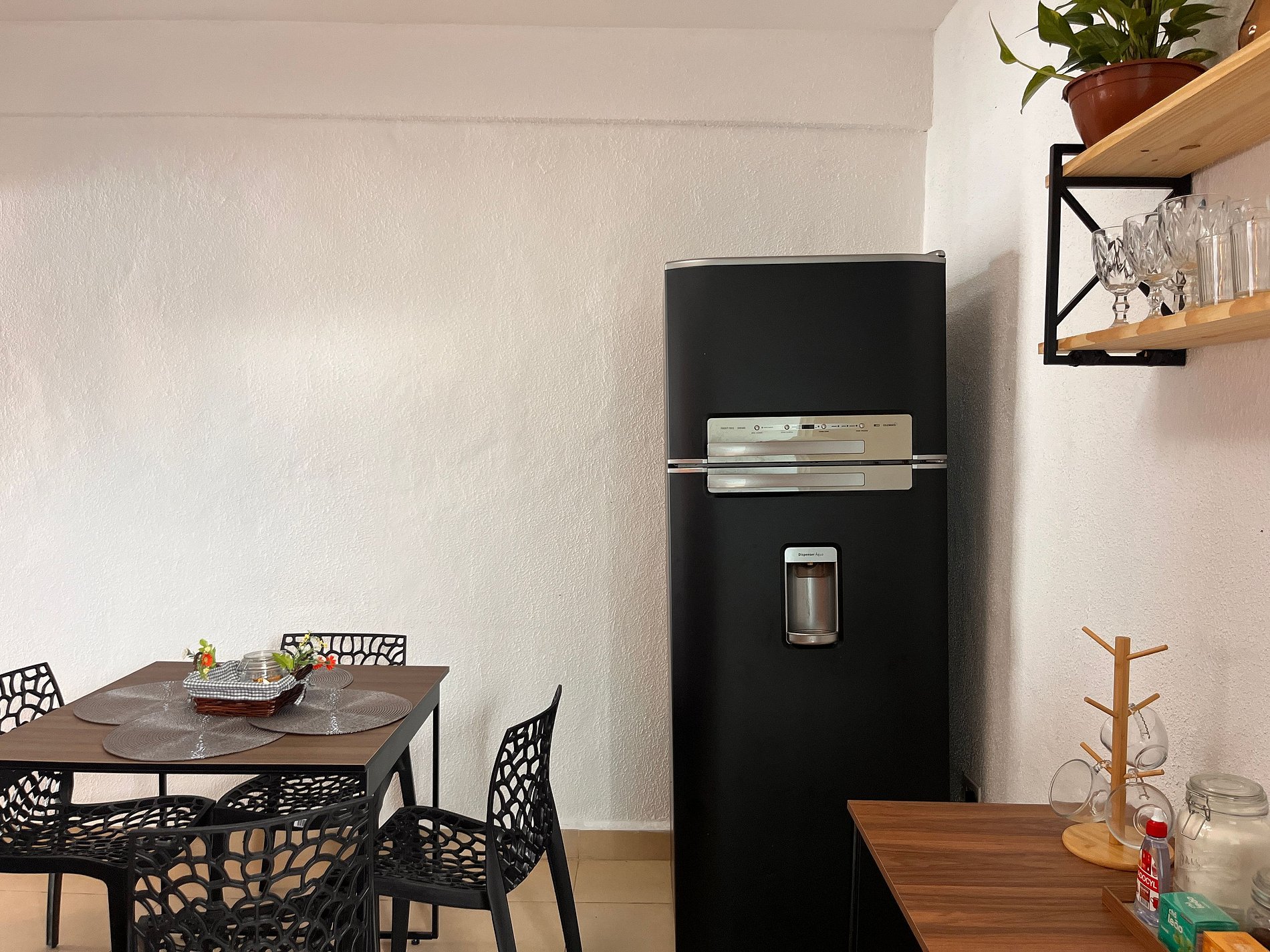 Com dois quartos, a casa acomoda até 8 pessoas com conforto. Os ambientes são amplos e bem iluminados, com sala aconchegante e cozinha completa equipada com air fryer, forno, cafeteira, micro-ondas, sanduicheira, torradeira e chaleira elétrica — perfeita para preparar boas refeições.