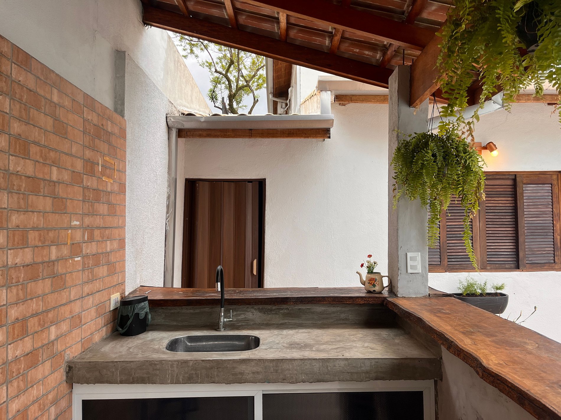 Na área externa, o espaço convida ao descanso. A piscina é perfeita para se refrescar nos dias quentes, e a área gourmet conta com pia, fogão, churrasqueira e mesa para refeições ao ar livre. Um lugar agradável para aproveitar o fim de tarde, preparar um almoço em família e relaxar nas espreguiçadeiras depois da praia.