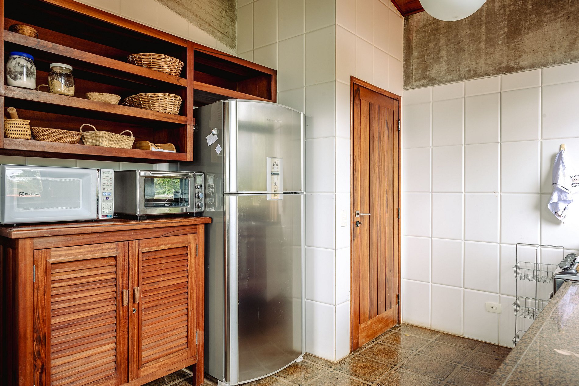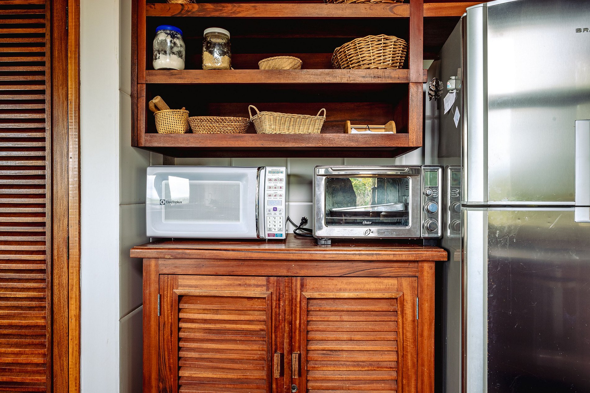 Para quem gosta de cozinhar, a área gourmet e a cozinha são bem equipadas, facilitando o preparo das refeições. Entre as comodidades estão um forno de pizza à lenha, churrasqueira e uma cervejeira, garantindo bebidas sempre geladas.