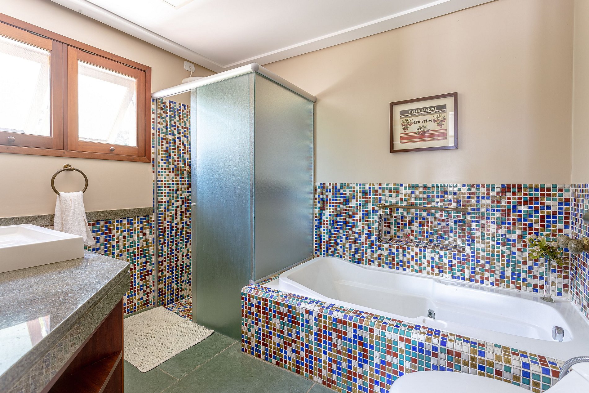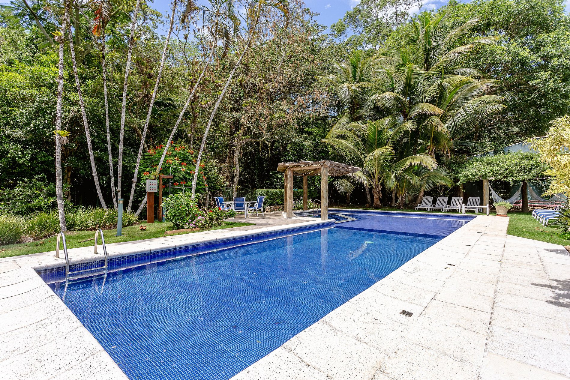 Um dos grandes diferenciais é o condomínio, que conta com uma encantadora área cheia de bichinhos como coelhos, pavões, galinhas e jabutis, quadra de tênis em saibro e uma quadra de futebol, compondo um ambiente acolhedor e cheio de vida para sua estadia. Para quem busca momentos de descanso, há redes para relaxar e um rio localizado atrás do imóvel, ideal para um mergulho ou momentos de contemplação da natureza.