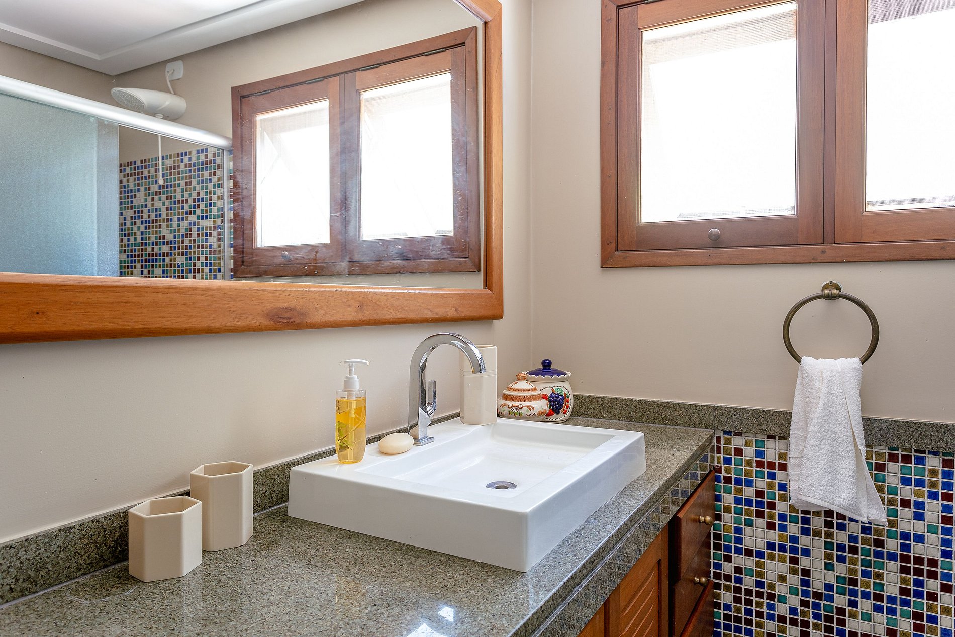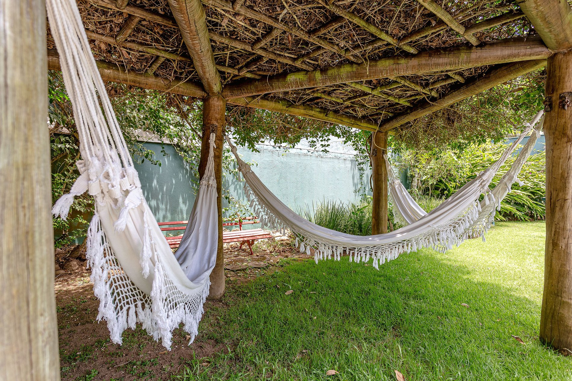 Um dos grandes diferenciais é o condomínio, que conta com uma encantadora área cheia de bichinhos como coelhos, pavões, galinhas e jabutis, quadra de tênis em saibro e uma quadra de futebol, compondo um ambiente acolhedor e cheio de vida para sua estadia. Para quem busca momentos de descanso, há redes para relaxar e um rio localizado atrás do imóvel, ideal para um mergulho ou momentos de contemplação da natureza.