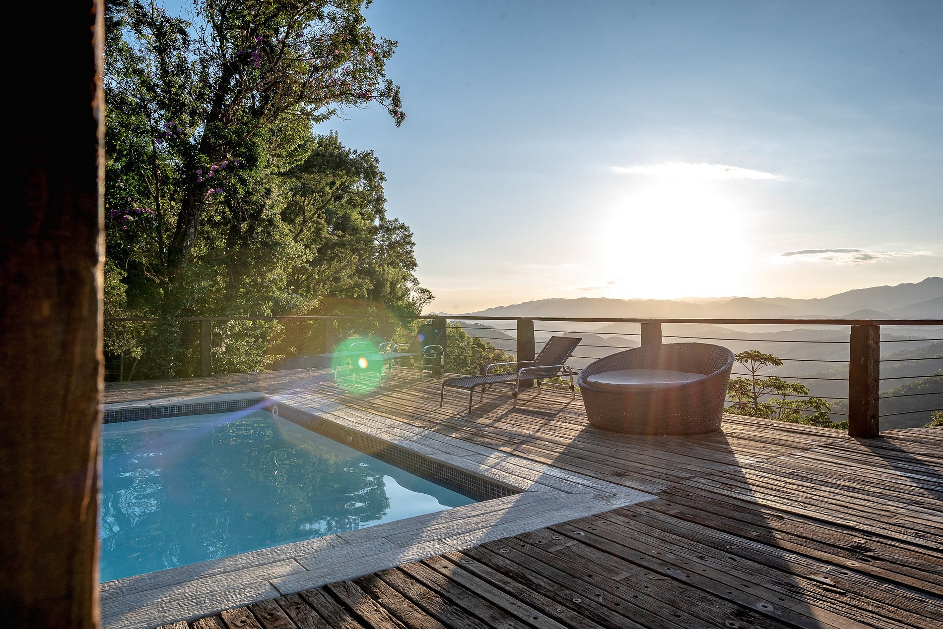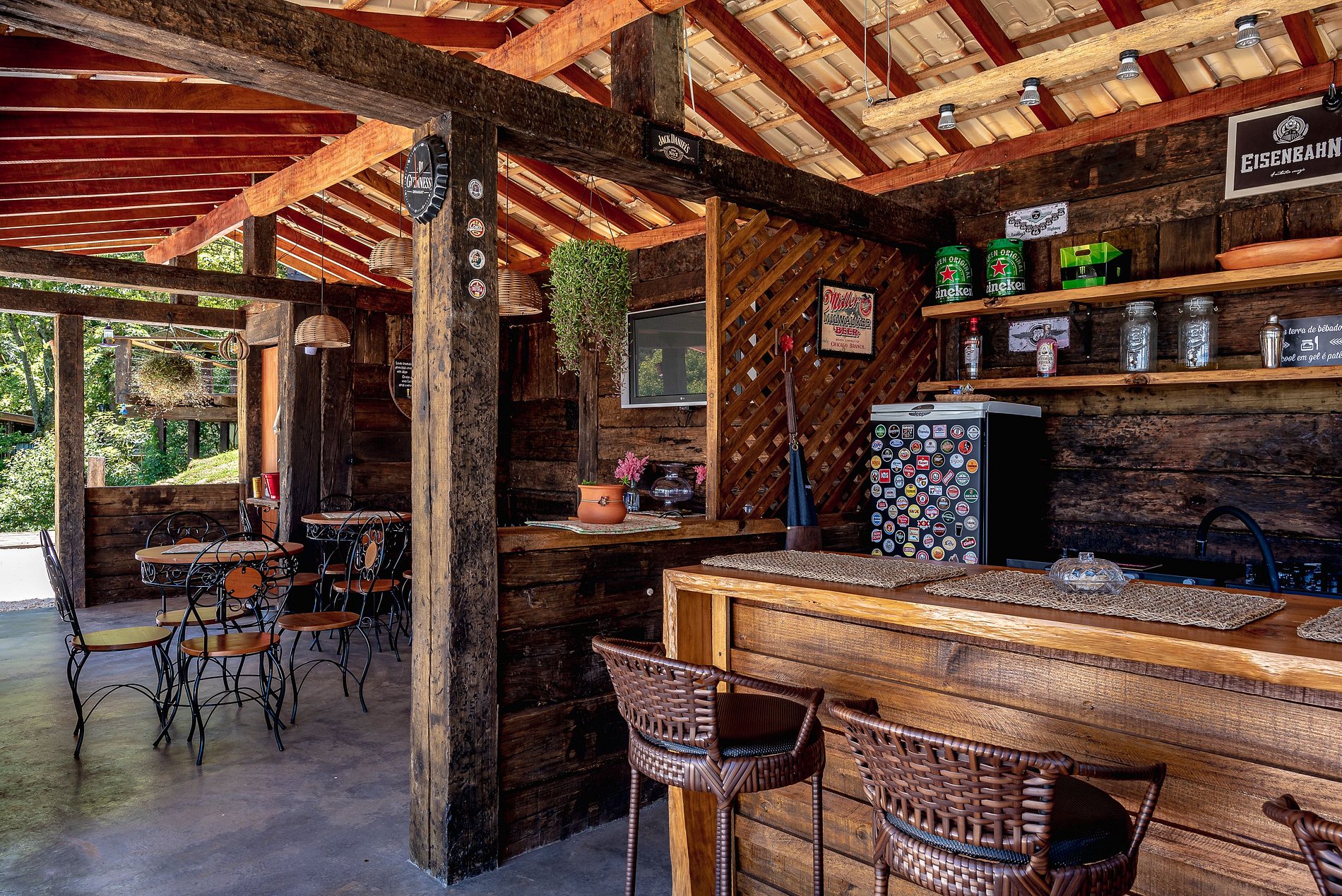 Contamos com quatro chalés incríveis, que proporcionam privacidade, além de uma área comum completa, com bar, piscina, mesas e fogo de chão — tudo para que você viva momentos inesquecíveis em meio à natureza.