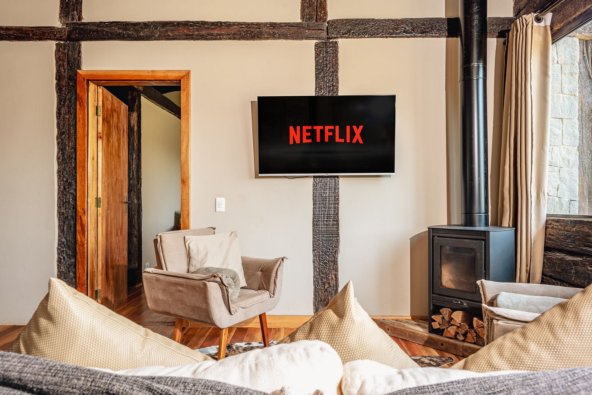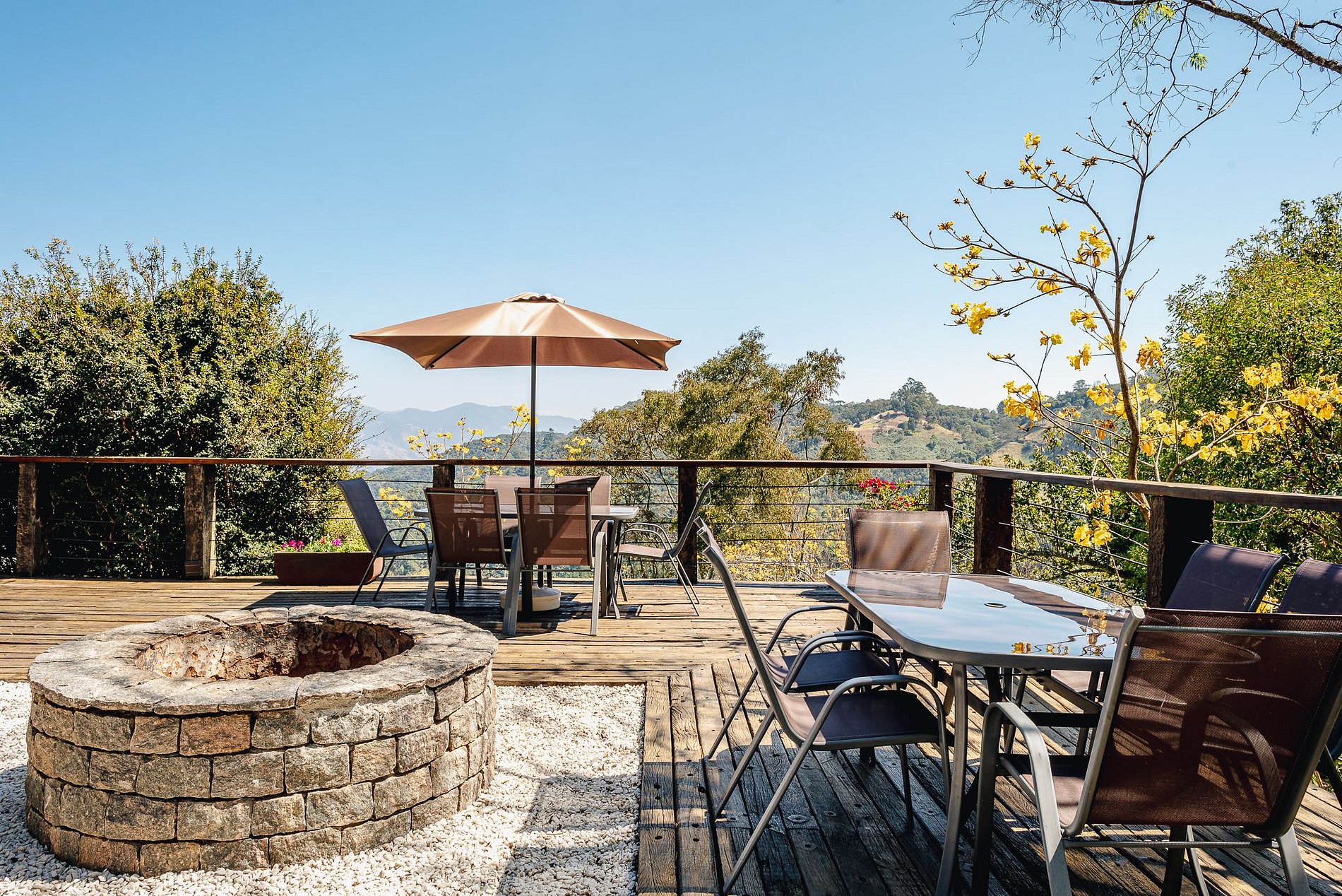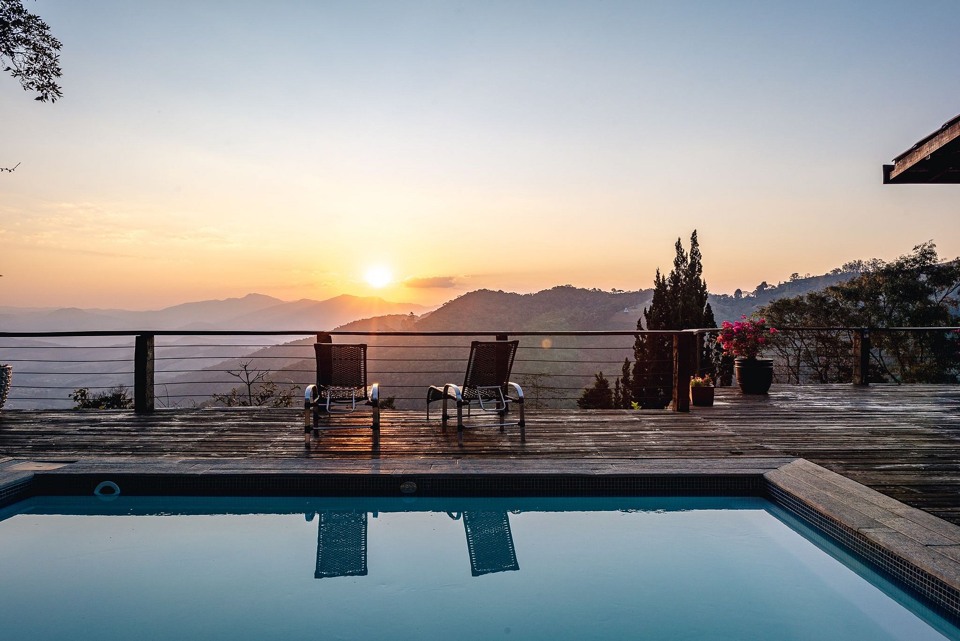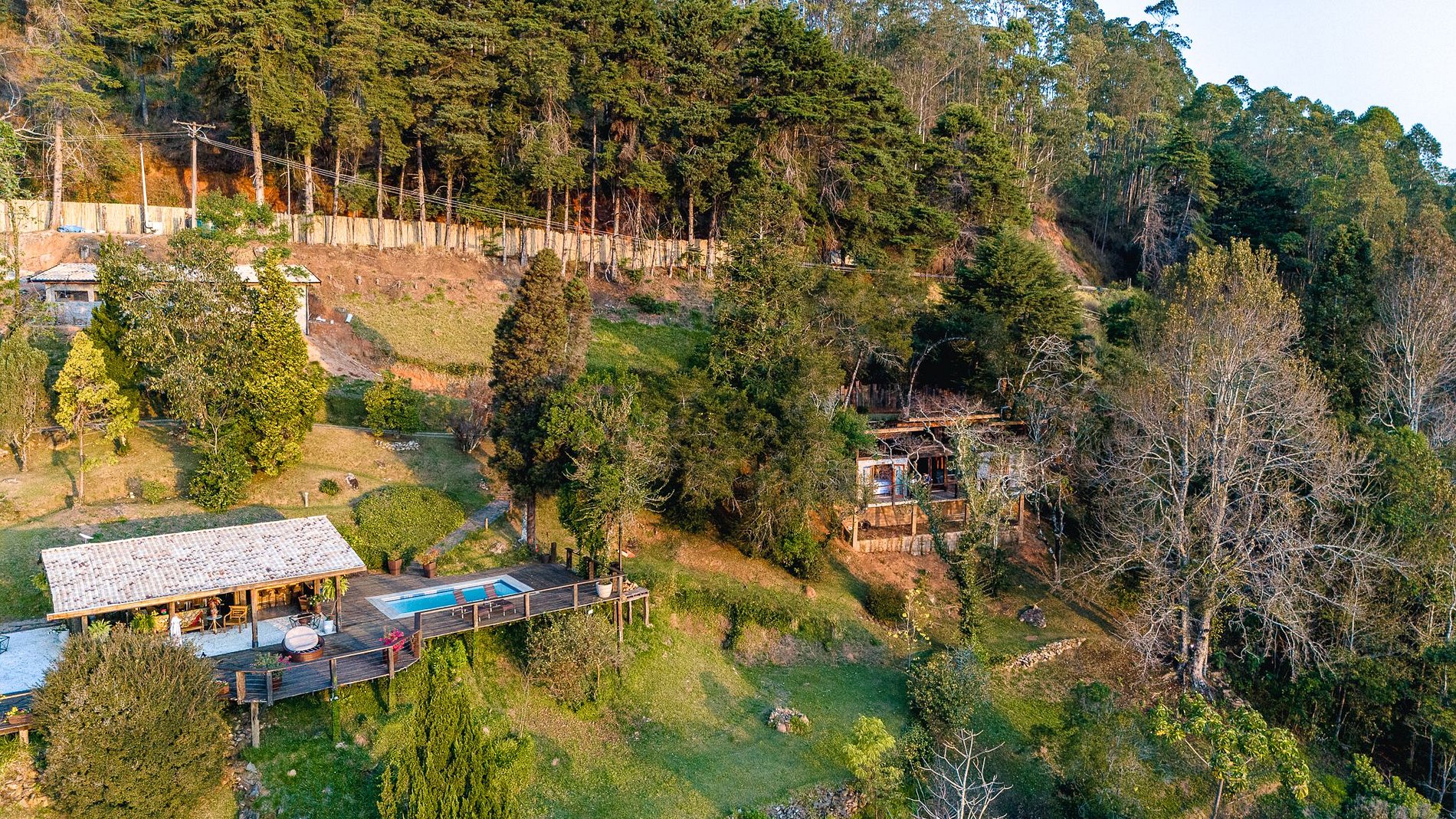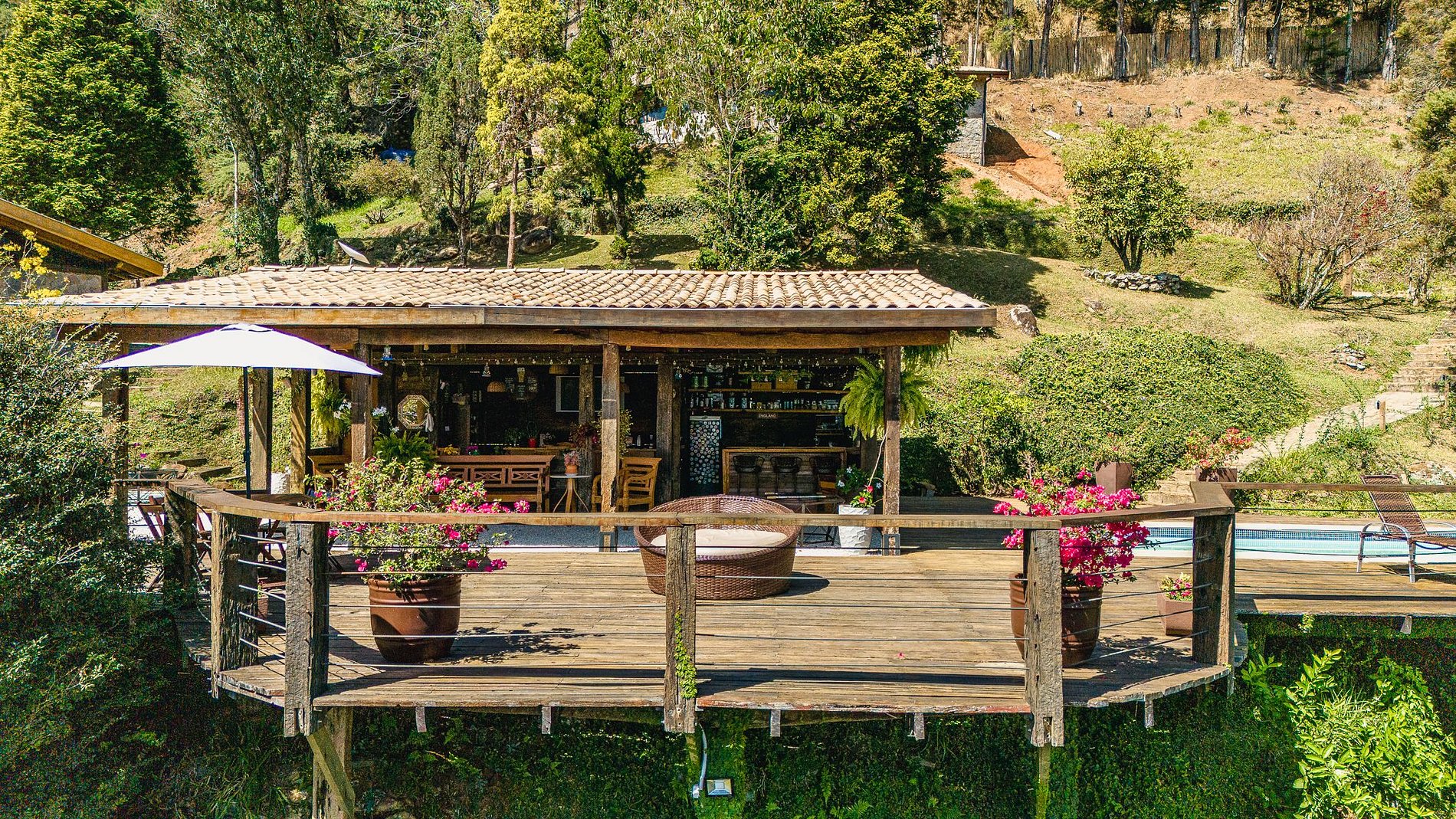 A Villa Serra Velha tem uma área compartilhada entre os hóspedes dos 4 chalés no deck que possui infraestrutura com mesas, TV, piscina, bar com cozinha completa, fogo de chão, churrasqueira e Wi-Fi.