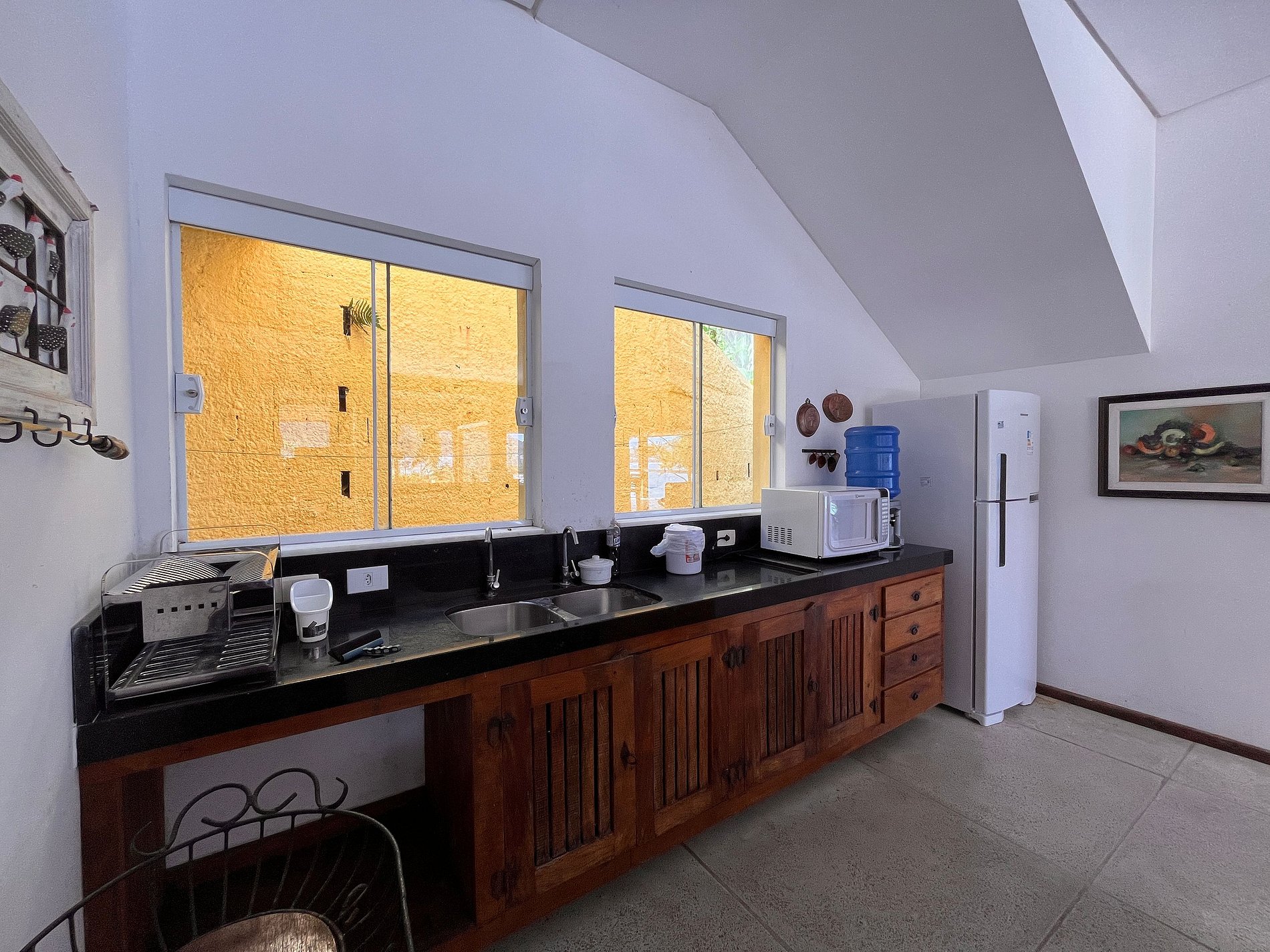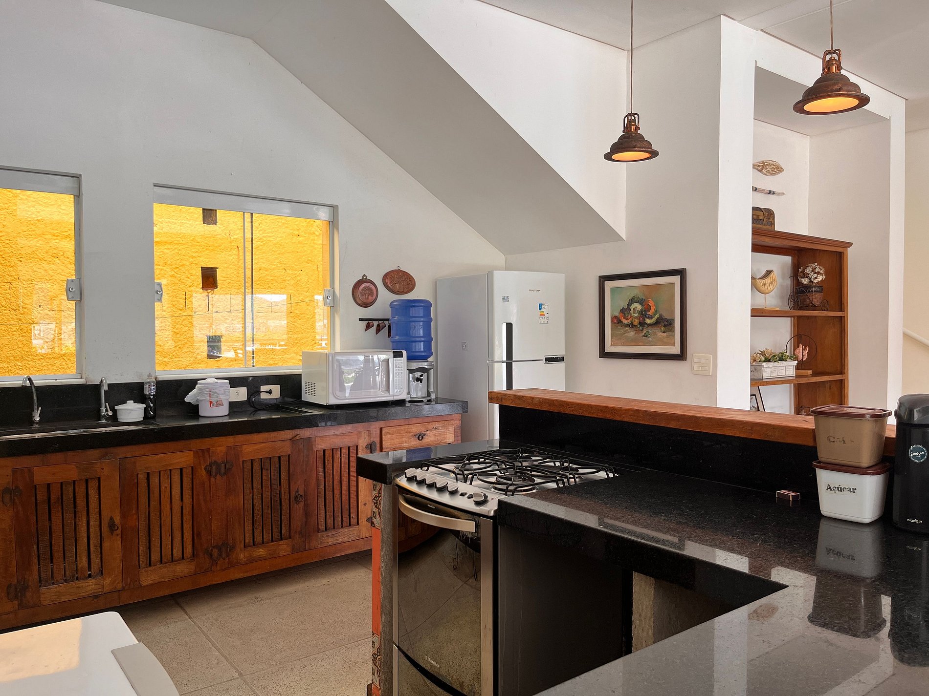 - Cozinha equipada com utensílios e eletrodomésticos.