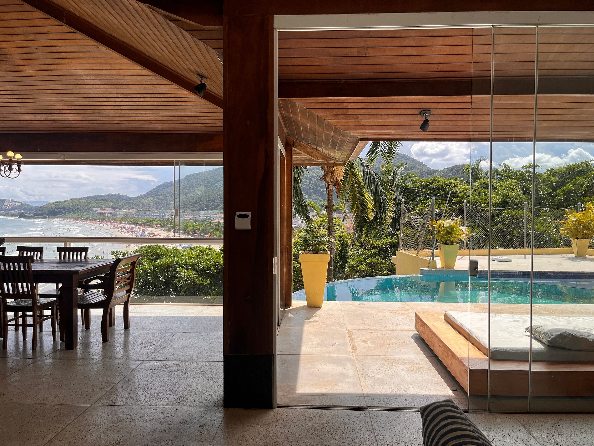 - Piscina com Borda Infinita: Desfrute da piscina com borda infinita, voltada para a Praia Grande, perfeita para relaxar, se refrescar ou simplesmente curtir o ambiente em total tranquilidade.